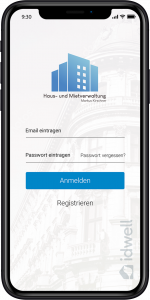 - Laden Sie sich die iDWELL App für Ihr Mobiltelefon für Android oder iOS herunter oder benutzen Sie diesen Link: https://hausverwaltung-mk.idwell.com